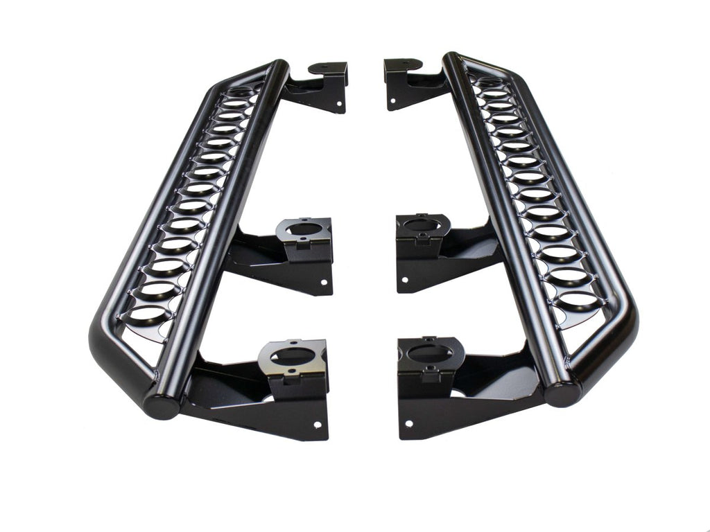The Rusty's JL Side Step Rocker Armor provide valuable protection from rocks and other obstacles on the trail, a convenient step to help with entry, and are a simple bolt-on installation!
