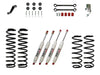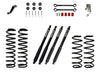 Rusty's offers two options for the front coil spring rates: 150 lb and a 180 lb. The 180 lb springs provide the same amount of lift but will better handle the extra weight of heavy accessories such as a big bumper, winch, or a snowplow. A drop pitman arm is provided to maintain proper steering geometry and to reduce steering linkage wear. A transfer case drop is also included to maintain proper driveline angles. The front and rear adjustable track bars keep the axles properly centered under the vehicle, while extended rear sway bar links are provided for proper stability on the street. Rusty's Performance Shocks provide excellent ride characteristics on the street with an emphasis on better off-road performance. Rusty's uses only the highest quality components to build a complete system that performs well yet remains a superior value.