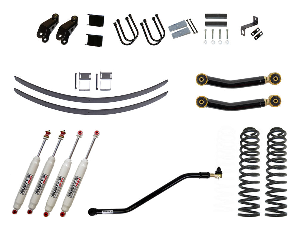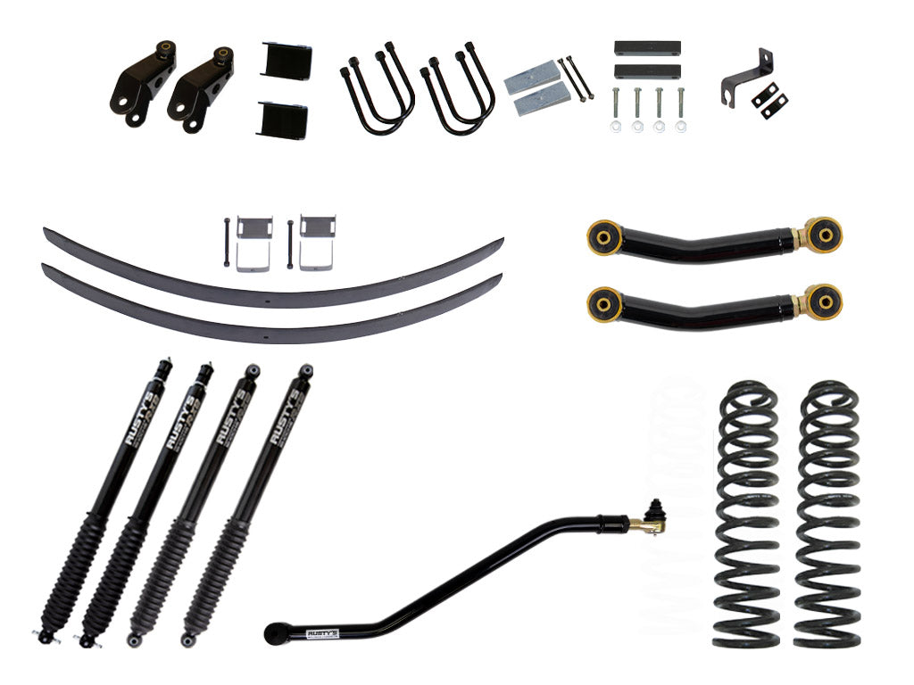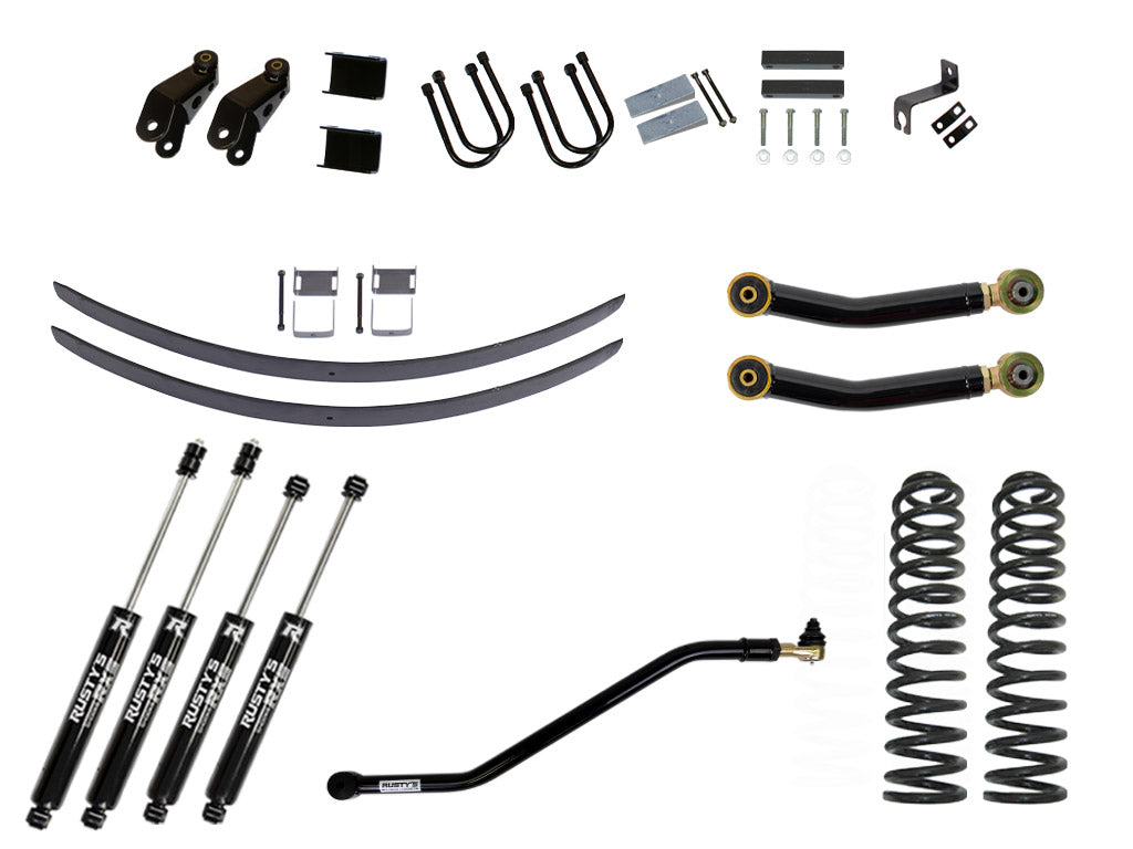 Rusty's 6.5 inch suspension kit consists of everything you need to run a 33 inch tire both on road and off road. You could even add a set of Rusty's...