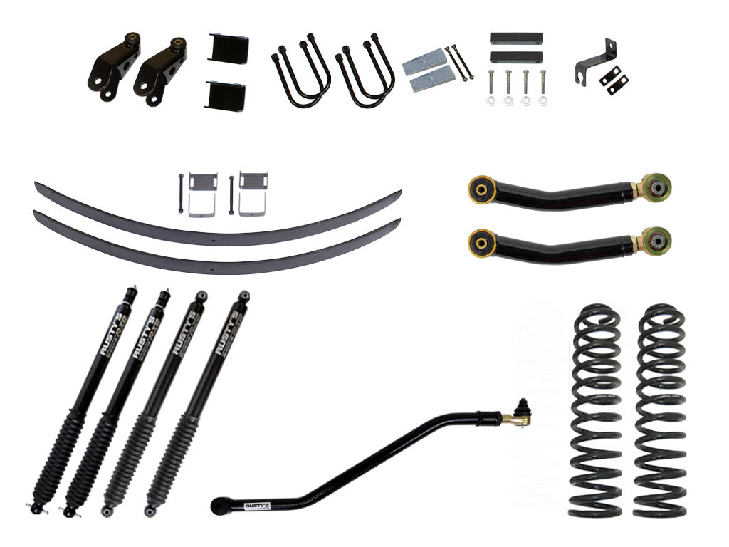 The Rusty's 4.5 inch Advanced suspension kit comes with everything needed to easily run 32 inch tires and includes some extra standard features that are optional with our other suspension...