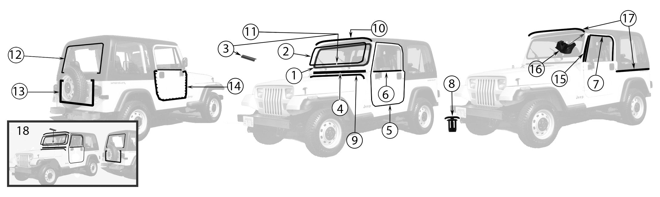 Glass Weatherstripping for 87-95 Jeep Wrangler YJ