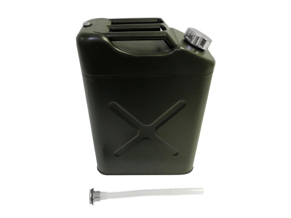 This 5.4 gallon galvanized steel jerry cans include a plastic pour spout, vent and a travel cap. The painted steel construction can easily be painted a custom color or used as it is received. Includes plastic nozzle 13.5″ long.