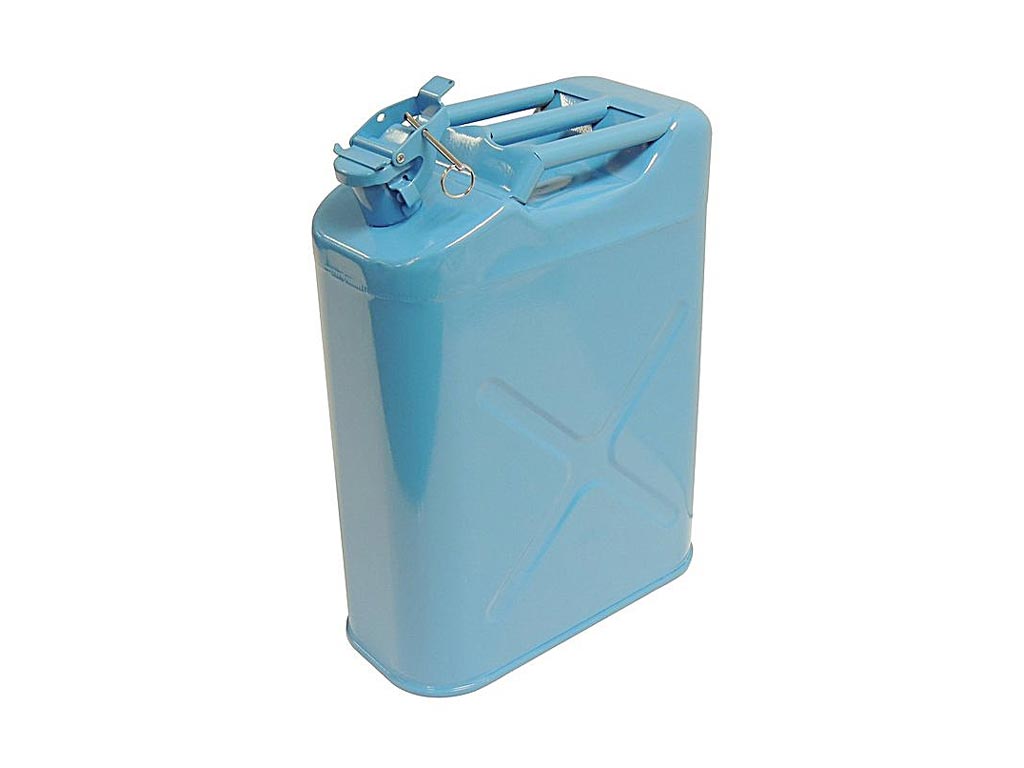 This steel water can has a spring-hinged cap held closed by cotter pin to keep the water in while you are on the rough trails. A food-grade polyurethane lining allows you to use this for potable water on over night trips or just have confidence that rust free water is ready for your radiator in an emergency. Same dimensions as a standard fuel jerry can so this will work with universal mounts. Blue powder coat is more durable than paint to look good for years.