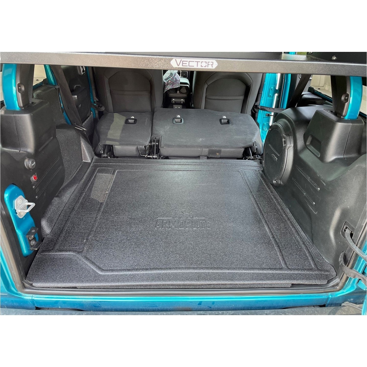 Complete replacement front and rear flooring system for 2018-2023 Jeep® Wrangler JLU (4Dr) models. Easy to install, easy to clean, reduces cabin heat and noise, and tougher than any floor on the trail for scratch and mar resistance.