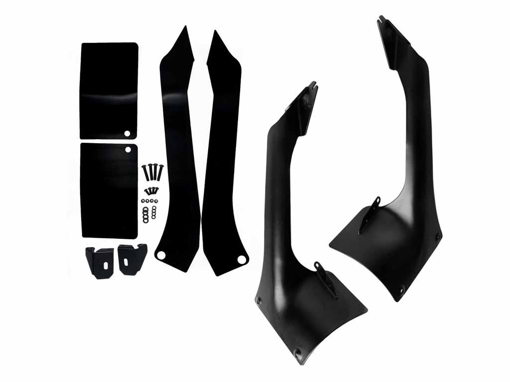 This overhead light bracket allows for a standard 50" LED light bar to be mounted to the windshield of a Jeep Wrangler JL or Jeep Gladiator JT. These brackets are formed from heavy 5-gauge steel and powder-coated Cardinal Textured Black for ultimate durability. KC ensures that mounting is easy with a 100% bolt-on design right into the factory bolt locations. Included in the kit are optional A-Pillar Tabs, as well as all the mounting hardware, silicone rubber gaskets, and KC's Adventure Further Guarantee.