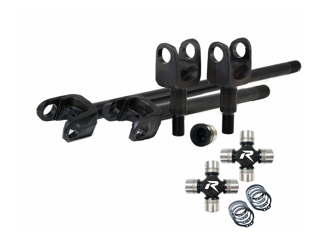 Revolution Gear and Axle Discovery Series 4340 Chromoly Front Axle Kit, fits 2007-18 Jeep Wrangler JK Sport and Sahara Models with Dana 30 front axle and 27 Spline axles. This Front Axle Kit replaces the Spicer 1350 Style 5-7166X U-Joint with Revolution Gear and Axle's Heavy Duty Chromoly 1350 Style Needle Bearing U-Joints creating the strongest axle setup and allows extra clearance for tighter turning versus the smaller 5-760X U-Joint.