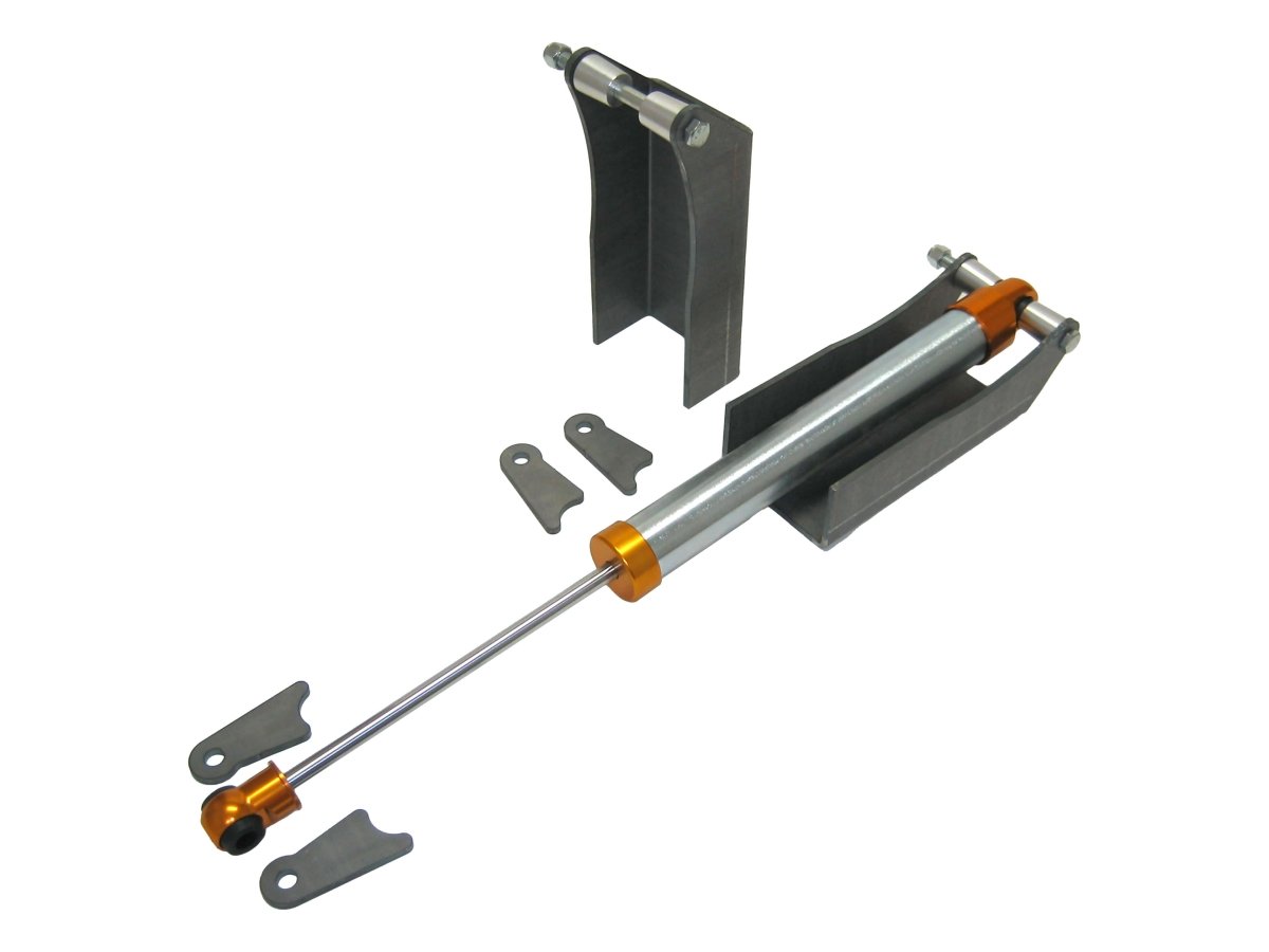 - Upper and lower shock mounts and tabs are constructed from 1/4" thick laser-cut steel