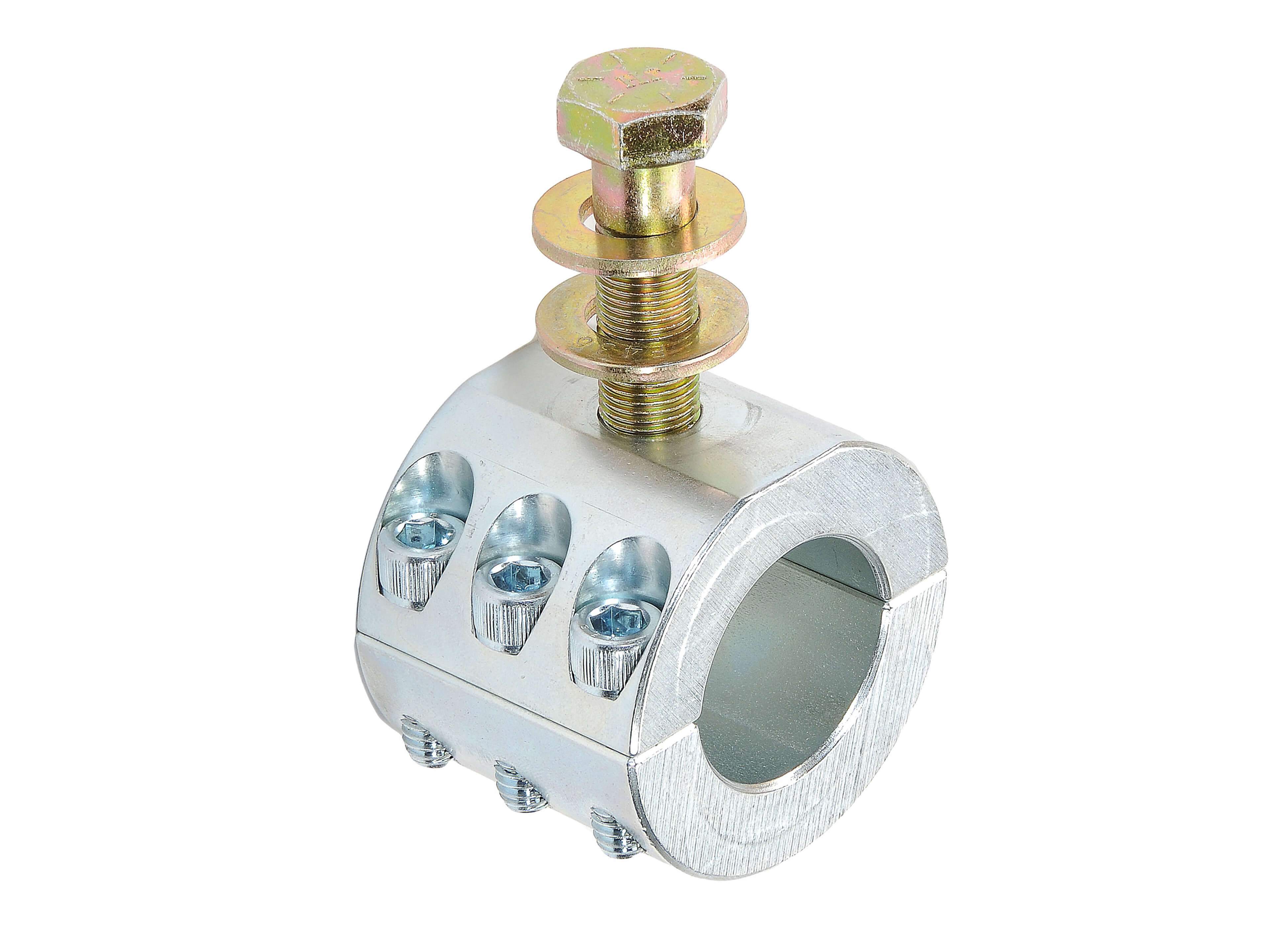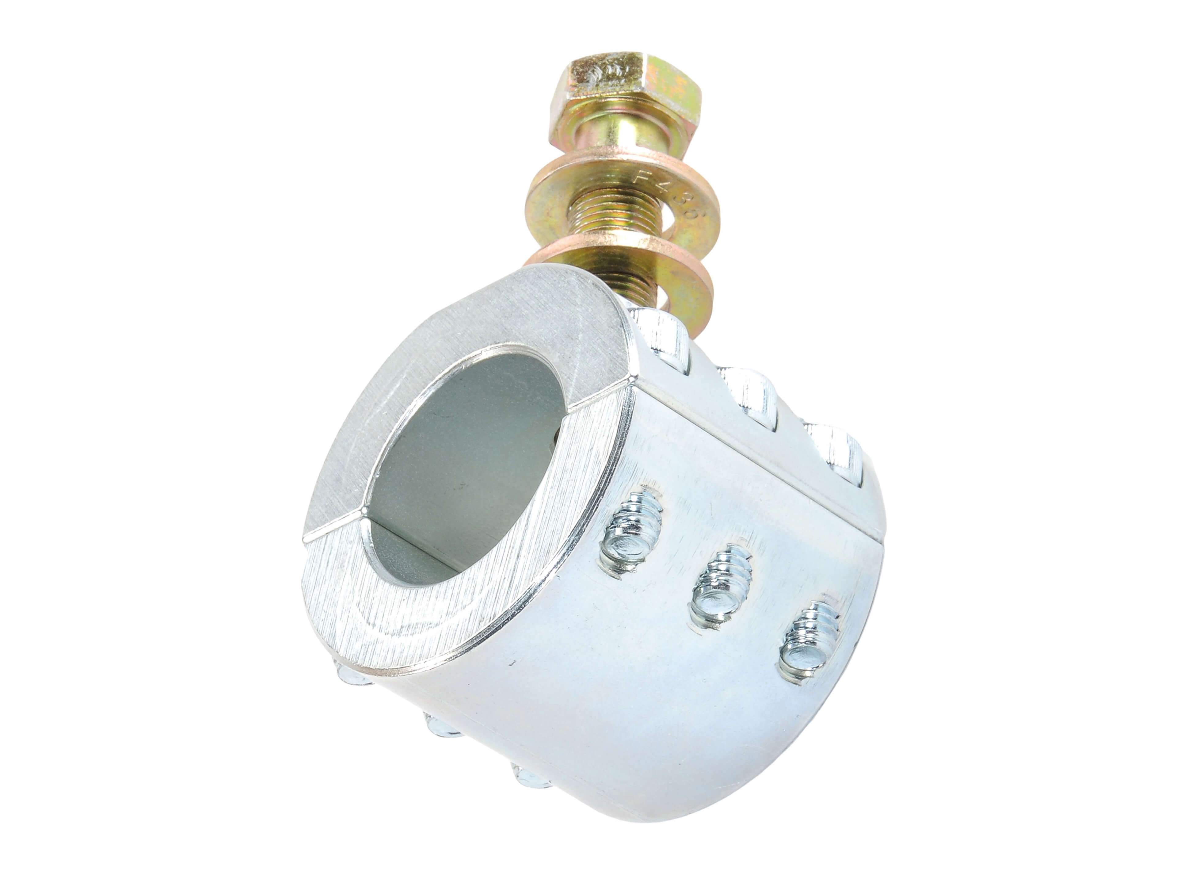 Rusty's HD Steering Stabilizer Mount is perfect for installing a steering stabilizer to 1.75 tubing or solid rod, Aluminum or Steel. Designed to clamp firmly to 1.75" diameter tubing, the mount offers an easy bolt-on installation. The bolt-on design also enables the mount to be easily moved on the tie rod, allowing precise adjustment to work with a variety of steering stabilizer lengths. The mount includes a 1/2" bolt.