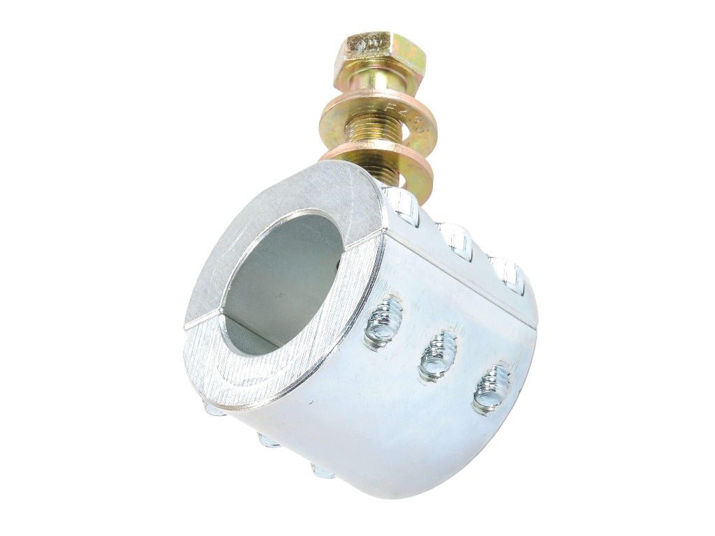 Rusty's HD Steering Stabilizer Mount is perfect for installing a steering stabilizer to 1.825 tubing or solid rod, Aluminum or Steel. Designed to clamp firmly to 1.825" diameter tubing, the mount offers an easy bolt-on installation. The bolt-on design also enables the mount to be easily moved on the tie rod, allowing precise adjustment to work with a variety of steering stabilizer lengths. The mount includes a 1/2" bolt.
