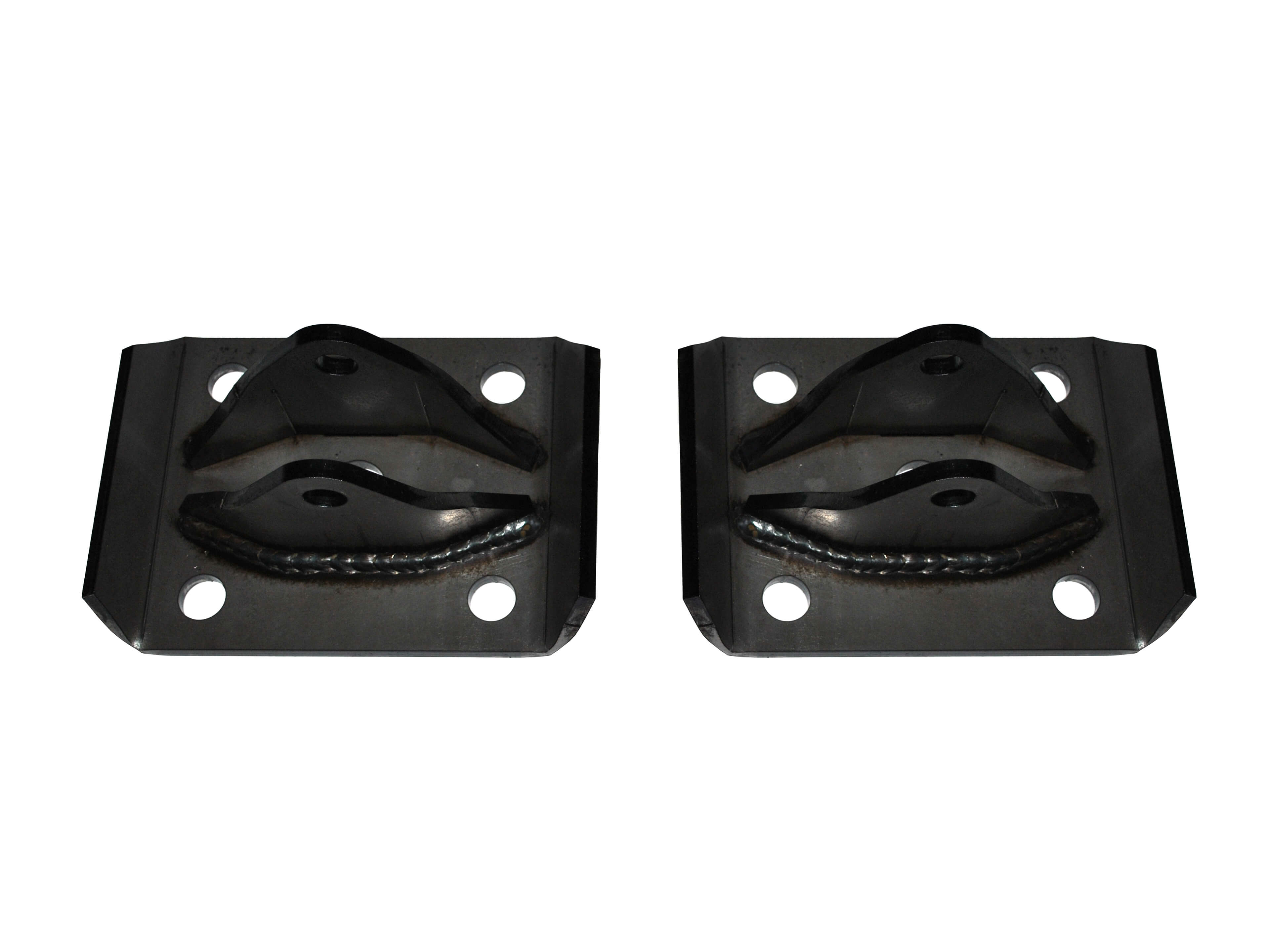 Rusty's JeepSpeed shock mount U-bolt plate is a great solution for mounting the rear shocks on a JeepSpeed Cherokee or other custom built XJ. Constructed of 1/4" thick laser-cut steel, the U-bolt plate has a shock mount built directly on the top, so that the shocks can be mounted outside the frame rails on the unibody and up through the fender well. The shock mounts are keyed into the U-bolt plate for a precision fit and feature standard 1.550" shock spacing. The U-bolt plate is drilled to accept U-bolts that fit around a 3" to 3-1/4" axle tube.