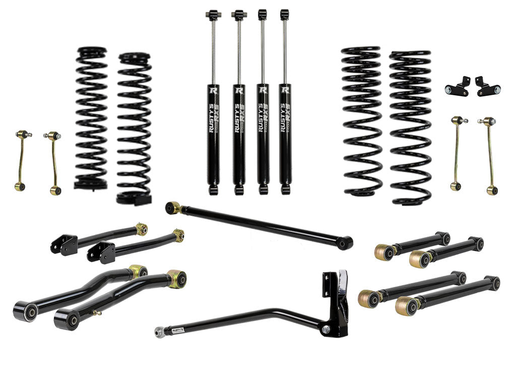 Rusty’s 2" Advanced Kit for the JT Gladiator was specifically developed to deliver the on-road performance people expect from the JT combined with the ultimate flex and control off the pavement. We weren't the first JT kit to be released, but we feel we have the most superior and one of the most complete. Where others rushed their prototypes to market with little to no testing, we invested the time and effort to thoroughly test everything. The result is what we feel is the most complete kit in the industry, and there's no need to accept anything less. It was our job to design a complete suspension package that would ride as good if not better, not lose any of the outstanding road handling manners, while increasing the lift height for larger tires and add more suspension travel. We knew the challenge ahead of us wasn’t going to be quick, nor was it going to be easy. We also spent countless hours on the computer designing with 3-D modeling. Now we feel we have designed and engineered one of our best kits yet.