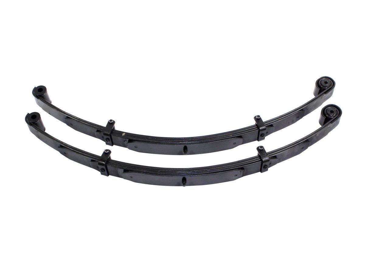 All of Rusty's leaf springs are built with tapered leafs and anti-friction pads to reduce inter-leaf friction and provide a smooth, linear rate as the spring compresses. We also use bolt-style retaining clips that further reduce friction and maximize suspension travel. The individual leafs are shot-peened to reduce spring stress as well as improve memory (reduce sagging), and each spring is load-tested to ensure they meet Rusty's stringent specifications. We also use only the best rubber or polyurethane bushings available. We vary the bushing material used based on the individual application's needs; some vehicles require the extra rigidity and support of poly bushings for optimum handling, while others benefit from softer rubber bushings for quiet operation and longevity. Rest assured, we put over 30 years of experience and computer-aided modeling into every spring we offer!