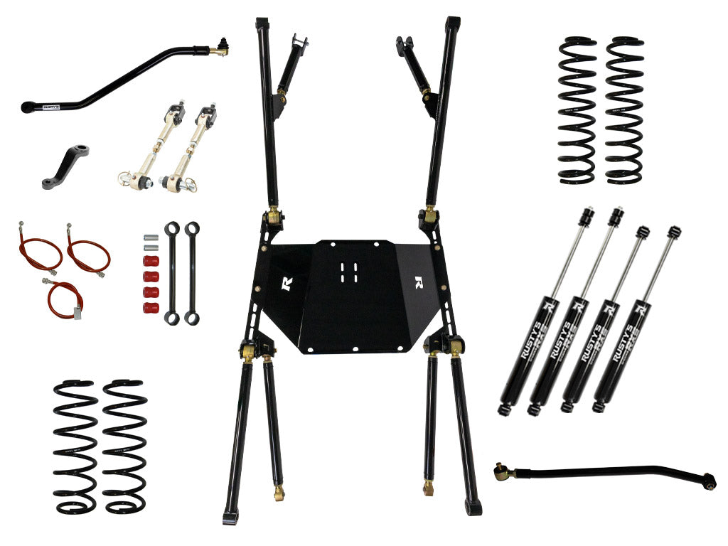 Rusty's 3" TJ Long Travel Suspension Kit is based on our proven 5.5" kit but has a few key changes that enable it to work at a lower ride height and still maintain impressive amounts of suspension flex. Like the taller kit, it takes you places other vehicles can't go; over logs, big boulders, or just about anything else on the trail. We have applied race technology and years of research and development to deliver a suspension system with enough articulation to keep your rig firmly planted even over the most radical terrain. This system is the answer for those who demand nothing less than bulletproof off-road performance!