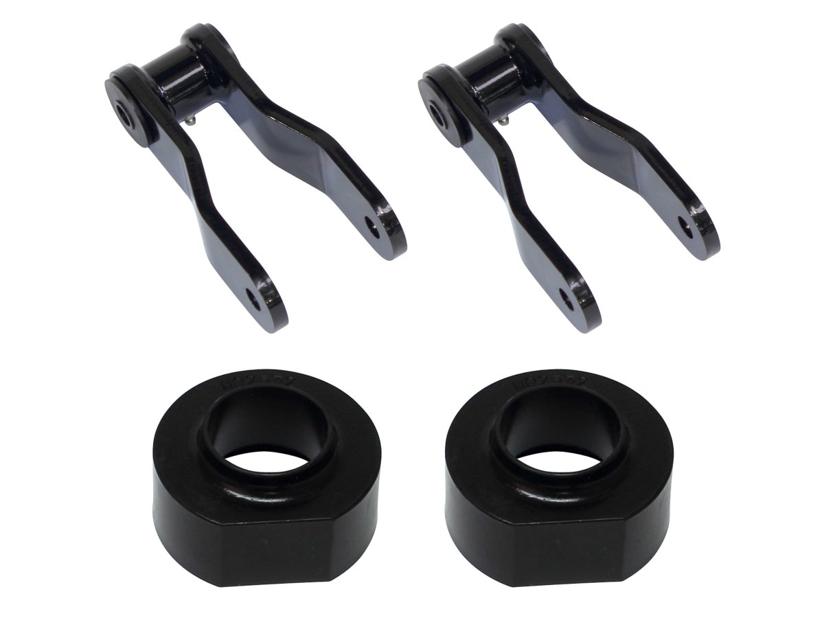 Rusty’s XJ Cherokee Shackle Budget Boost is a simple and inexpensive way to raise your vehicle in order to clear 30-inch tall tires. The front is raised by a 1.75" thick poly spacer that is located on top of the front coil springs. The rear is raised by our greaseable extended shackles. Stock shocks will work but Rusty’s Performance Shocks are recommended. Installation is fairly simple with proper tools and minor suspension experience; driveway time for a typical installation is about 3 hours.