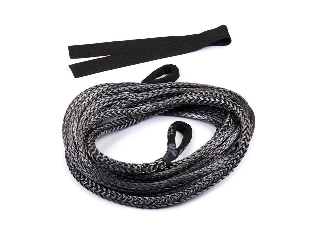 Spydura Pro synthetic winch rope using Spectra® 1000 is heat treated offering the maximum in tensile strength and load bearing capacity. The compacted diameter prevents sand and dirt from penetrating the fibers and extends the life of the rope. Coated with high temperature urethane and equipped with a ballistic nylon sliding sleeve, Spydura Pro synthetic winch rope provides extreme protection against wear and abrasion. Lightweight and reinforced soft eyes make the winching procedure quick and easy to set-up when using this rope extension on the trail.